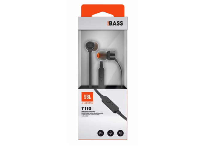 JBL T110 – Auriculares internos con micro – en oreja – cableado – conector de 3,5 mm – negro
